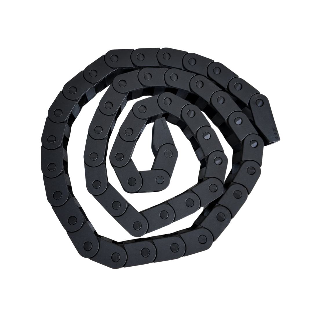 Cadena de arrastre para cable o tubo. Cada eslabón se puede desarmar para modificar la longitud según el requerimiento.