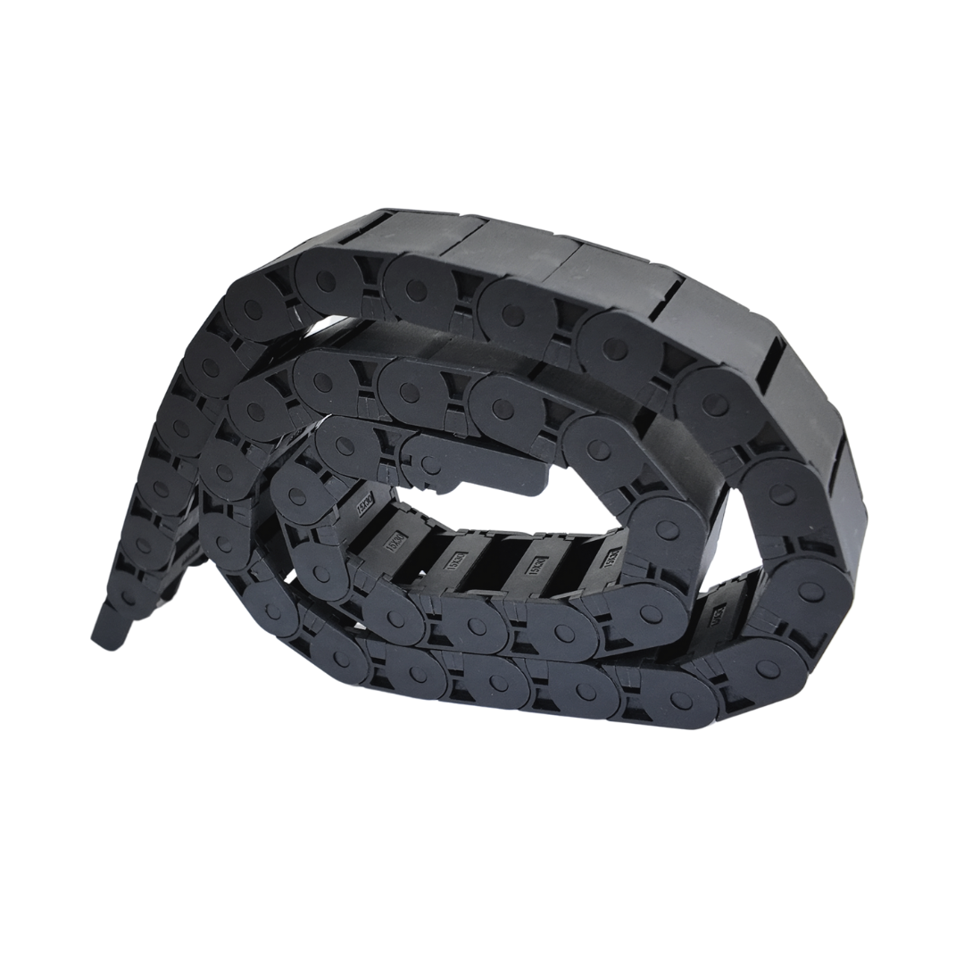 Cadena de arrastre para cable o tubo. Cada eslabón se puede desarmar para modificar la longitud según el requerimiento.