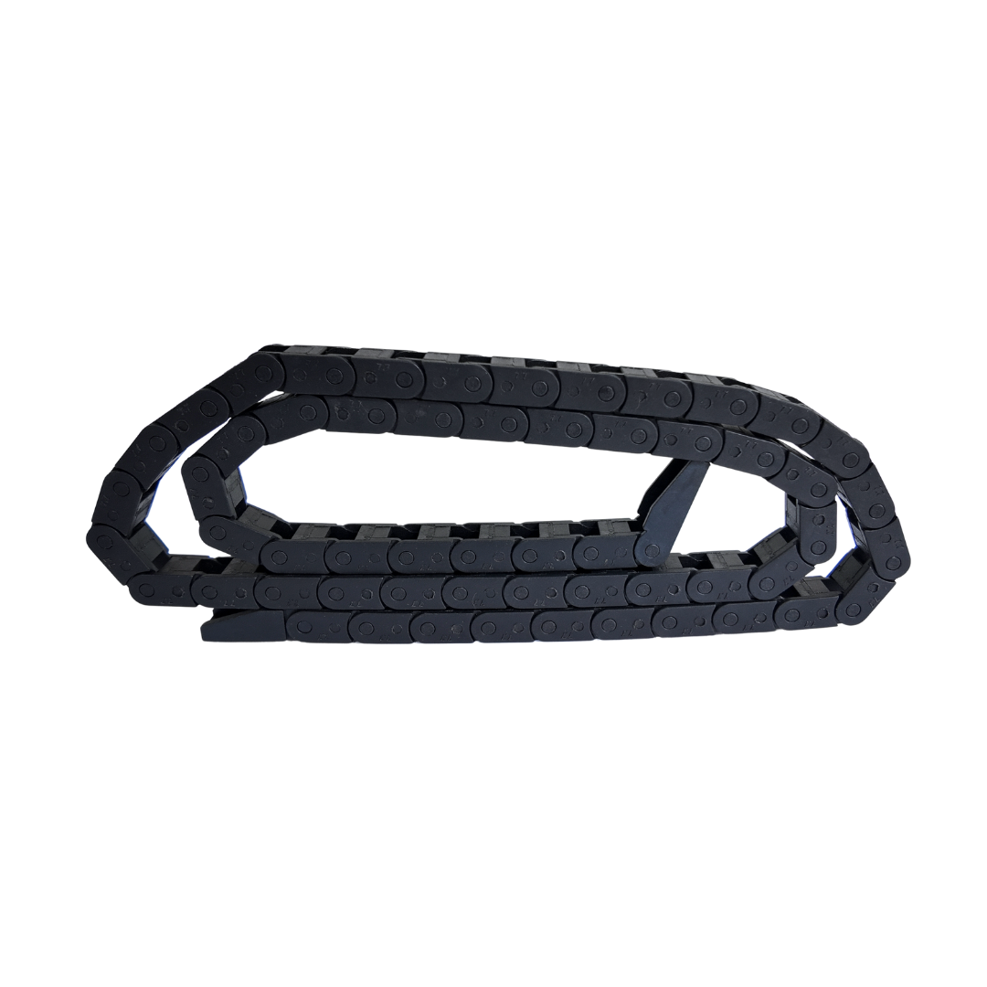 Cadena de arrastre para cable o tubo. Cada eslabón se puede desarmar para modificar la longitud según el requerimiento.