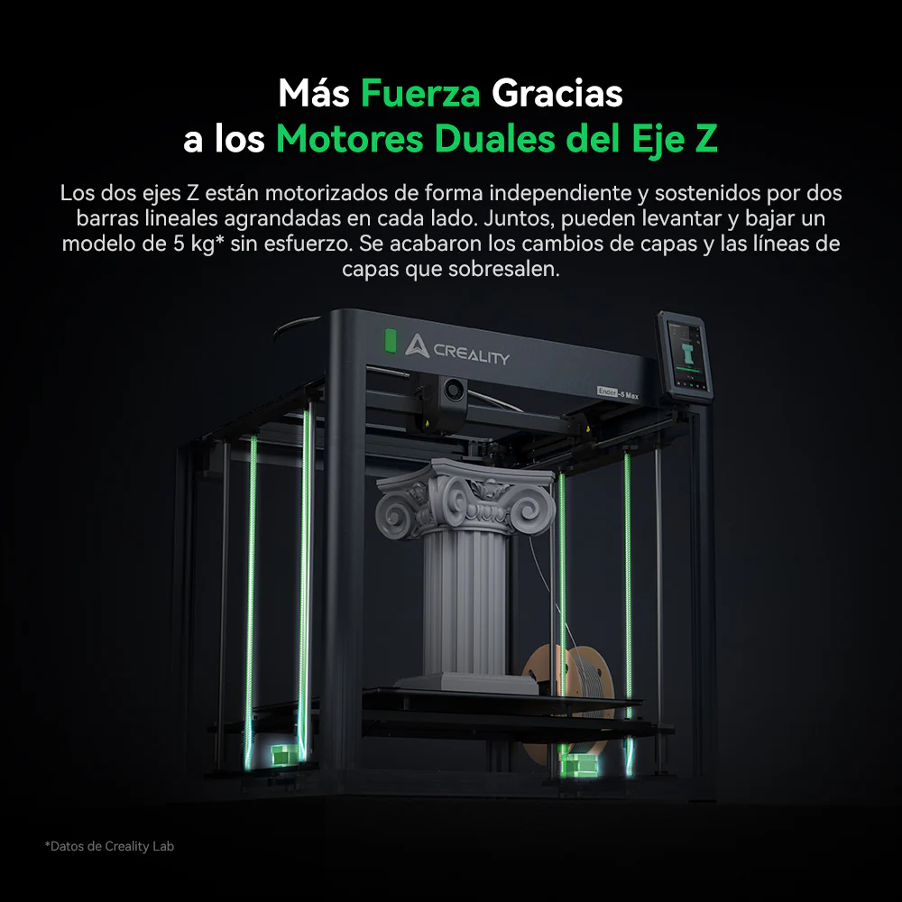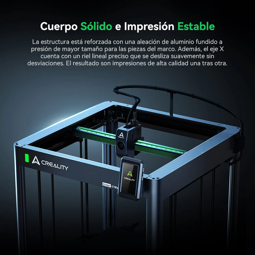 La Ender-5 Max de Creality es una impresora 3D de alto rendimiento diseñada para usuarios avanzados, fabricantes y empresas que buscan impresiones de gran tamaño sin comprometer la calidad ni la velocidad. Con un volumen de impresión de 400 x 400 x 400 mm, esta impresora CoreXY lleva la impresión 3D al siguiente nivel. Ofrece una velocidad ultra rápida de hasta 700 mm/s y una estructura robusta para garantizar estabilidad y precisión en cada capa.