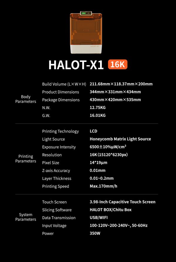 • Compatibilidad con software: Funciona con HALOT BOX y Chitu Box, garantizando flexibilidad y control en el diseño de piezas.