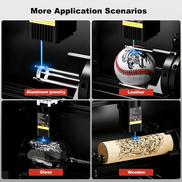 Potencia de 7W: Ofrece un equilibrio perfecto entre velocidad de grabado y detalle fino. Por lo tanto, puedes crear logotipos y textos con una definición impecable.